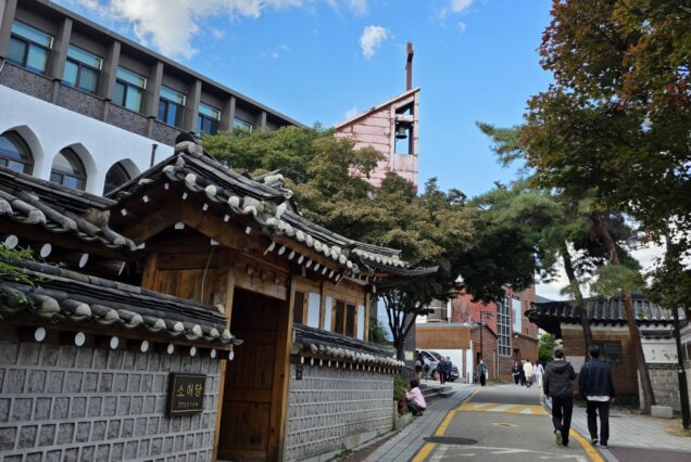 BukChon is located between GyeongBokGung Palace, ChangDeokGung Palace, and JongMyo Shrine, and it is an area where traditional Korean houses, or hanok, are densely clustered.